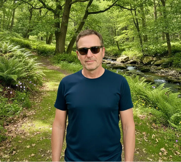 J’suis électricien, pis j’cherchais un t-shirt qui fit dans toutes mes journées : la job, les sorties, même les petites marches en forêt.